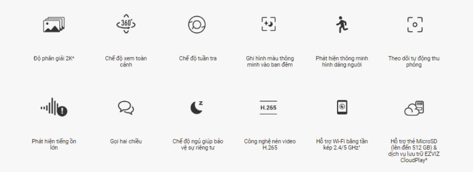 Hỗ trợ tối đa thẻ nhớ MicroSD 256GB Lưu trữ đám mây EZVIZ (tùy chọn) |