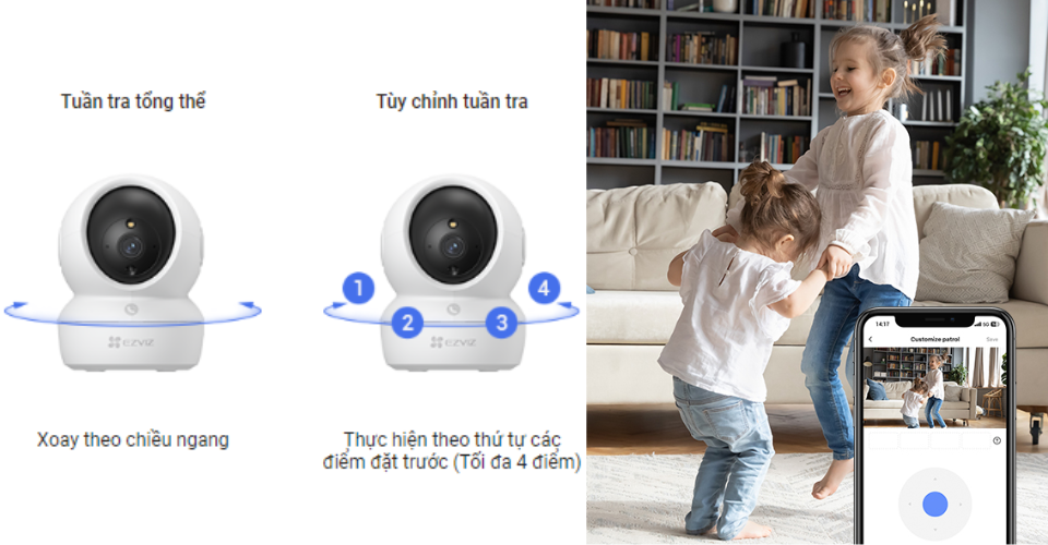 Với chế độ tuần tra độc đáo, H6c Pro 2K⁺ tự động quay quét góc nhìn để loại bỏ các điểm mù. Hơn nữa, bạn có thể tùy chỉnh việc tuần tra phù hợp với ngôi nhà đặc biệt của mình để quan sát không bỏ sót góc nhìn nào.