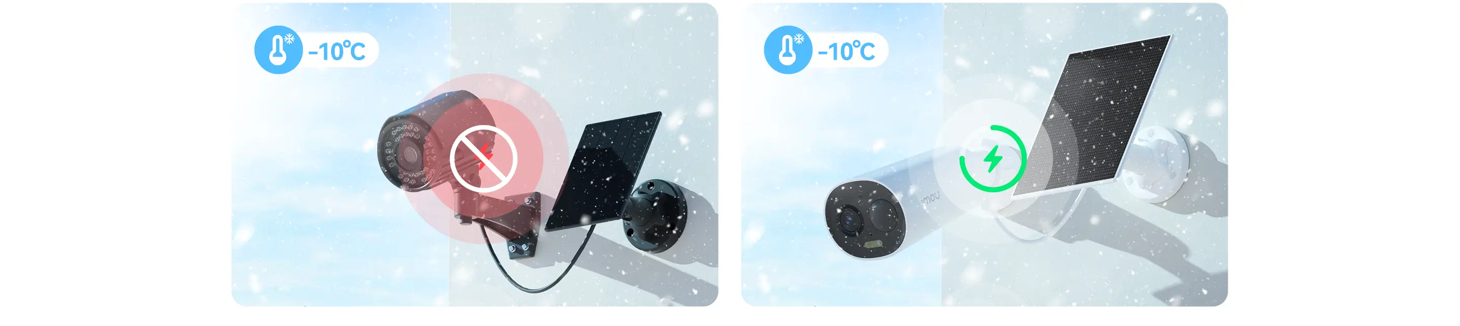 - Công nghệ sạc nhiệt độ thấp của IMOU giúp camera vẫn sạc tốt ở -10°C.